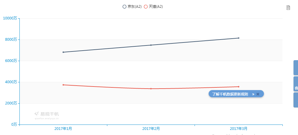 作为B2C两个代表,京东和天猫的变化走向一向也是电商行业的风向标,我们也通过摘录对比2017年最新出炉的2017年3月份二者APP数据来进一步对比,二者究竟有何种差别。