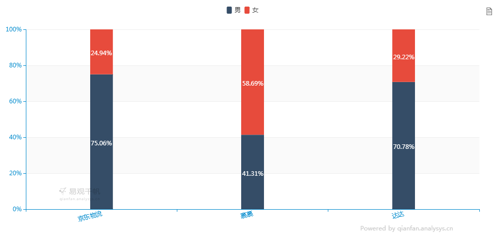 根据千帆数据显示,2017年1月到3月,裹裹在所对比的三个物流APP中用户活跃量最高,其次是达达,最后是京东物流,裹裹、达达、京东物流3月份的用户活跃量依次是636.23万、120.53万、12.33万;在用户性别上分布上,京东物流以男性用户占优,男性所占比例为75.06%,裹裹以女性用户占优,女性用户所占比例为58.69%,达达以男性用户占优,男性用户比例为70.78%;