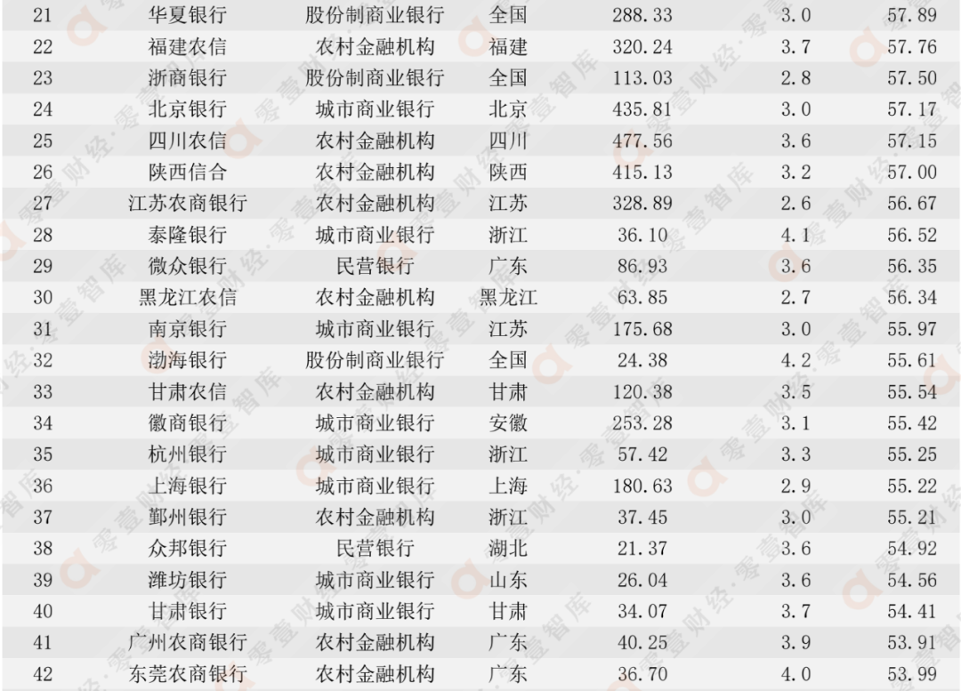 随着银行数字化转型速度加快,手机银行App成为了当下银行服务的主要载体。目前,一批手机银行已运营超过十载,其并非一个单纯的App,而是发展为服务上亿零售客群的“超级平台”,平台功能革新也在“从量变走向质变”。2022年以来,各家银行App迎来进一步的版本更新迭代,无论是数字金融还是数字生活都得到了更进一步的用户体验提升。为了对我国手机银行数字经营情况做出全景式展示,零壹智库与中国零售金融智库联合发布2022上半年“手机银行TOP 100”榜单。零壹智库从2020年下半年开始,系统解读中国银行业数字金融生态平台的发展变迁,其中手机银行是重要一环。此前,我们曾连续发布了5期“手机银行TOP 100”榜单。本次基于此前榜单的评分结果,结合2022年上半年我国主要手机银行的经营表现,再次选取近200家手机银行样本,根据零壹智库设定的评价体系,展开综合分析。评价体系涵盖了4大维度指标,具体包括用户规模粘性、日均启动使用、商店口碑评分、产品功能体验,各指标的权重分别为35%、15%、30%、20%,最终形成2022上半年手机银行TOP 100榜单。2022年上半年以来,手机银行的重要性进一步凸显,构建全新的线上场景生态平台已经不仅是一句战略口号。经过多年的经营实践,各类商业银行已形成差异化竞争优势,在手机银行数字竞争力的综合排名上,一批中小银行在App用户口碑、活跃度等方面甚至超越了部分大行,进而带动自上而下的数字化行动与员工运营思维变革。(一)排名综述:招商银行位列第二,民营银行集体发力零壹智库根据我国银行业的划分类型,得出下述有关手机银行竞争格局的研究结论:六大国有大行牢牢占据着榜单前列的位置,并全部跻身于榜单TOP 10,主要得益于各国有大行的规模优势,2022年上半年平均月活用户均超2500万,最高达到1.16亿。在得分的总分上,工商银行以96.88分依旧位居第一,而建设银行以91.86分排名第三,较2021年下降一名,除建设银行之外邮储银行排名第十位同样下滑了两个名次。TOP 10的其余四席均为股份制商业银行,招商银行则以92.46分超越了建设银行达到了第二的位置,招商银行虽然在用户规模和App使用频率上不及建设银行,但其主要优势在于用户口碑方面;平安银行则以72.87分排名第七,紧随其后的是兴业银行和浦发银行分别位列第八和第九,其中兴业银行相较2021年上升了三个名次。在TOP 30中,股份制银行依旧优势明显,除了上述四家还有中信银行、民生银行、光大银行、广发银行、华夏银行和浙商银行位列在前三十名,而值得注意的是另一个股份行渤海银行总得分为55.61分位列第三十二名,较2021年大幅上升36名之多。在城市商业银行的比拼中,共有五家进入到TOP 30的榜单之中,分别为宁波银行61.1分排名14、江苏银行60.7分排名15、中原银行58.2分排名18、北京银行57.2分排名24以及泰隆银行56.5分排名28,和2021年进入TOP 30的银行相比数量相同,但是泰隆银行和南京银行分别替代了长沙银行和桂林银行进入榜单之中,尤其是泰隆银行较2021年上升了17名;除了农商行之外,农村金融机构同样将手机银行App作为银行数字化的重要支点,进入TOP 30的农村金融机构共有七家,分别为丰收互联(浙江农信)、重庆农商行、福建农信、四川农信、陕西信合、江苏农商银行以及黑龙江农信,与2021年相比增加了一家,其中四川农信和江苏农商银行为新上榜农村金融机构。规模更小的民营银行入选TOP 100的共有七家,入选银行和2021年无异,其中网商银行和微众银行也再度入选TOP 30,排名分别是第16名和第29名,其余五家分别为众邦银行、亿联银行、蓝海银行、三湘银行和富民银行。民营银行相较于2021年数字化进一步得到提速,大多数民营银行名次都有着不同程度的上升,其中众邦银行和亿联银行分别大幅上升18名和29名。(二)得分结果:2022年上半年手机银行TOP 100综合排名展示表 1:2022年上半年手机银行数字竞争力TOP 100