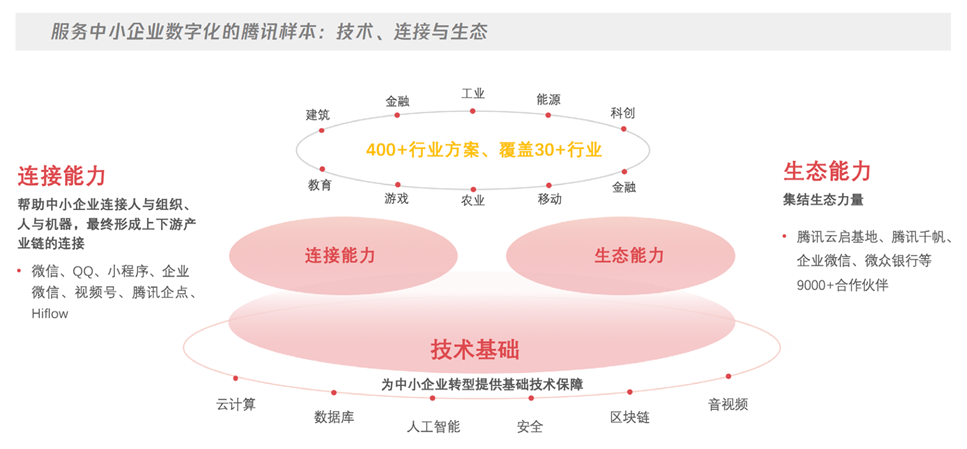 目前,腾讯已经自主研发了400多款企业应用,涵盖了30多个行业,其中大部分可以为中小企业快速应用,助力降本增效。
